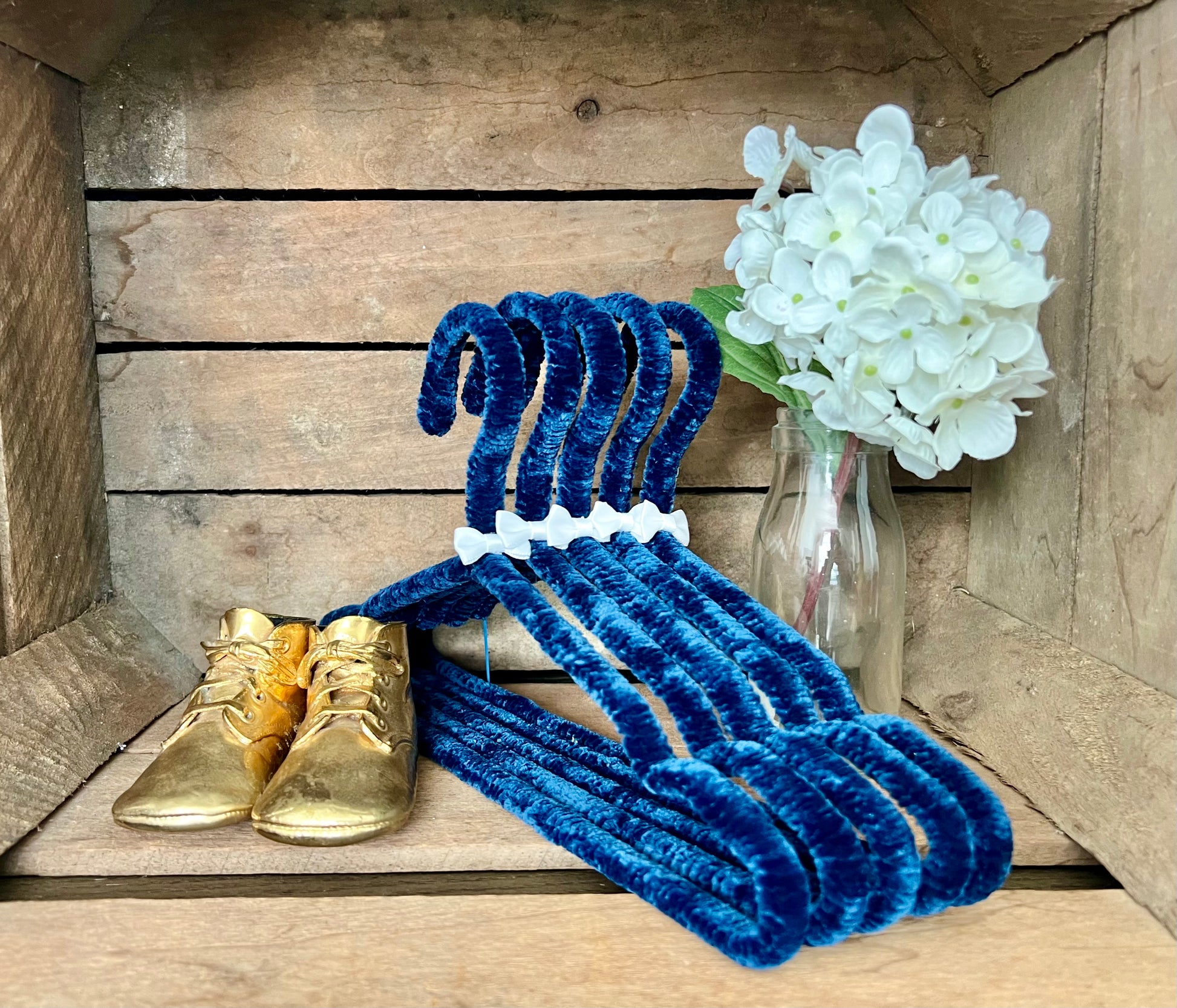 Our children's hangers are colorful, lightweight, and safe for little clothes. These hangers are created by wrapping a sturdy wire frame with soft yarn, giving them a textured and whimsical look. They come in various colors and patterns, making them appealing to kids and adding a fun touch to a child's closet.